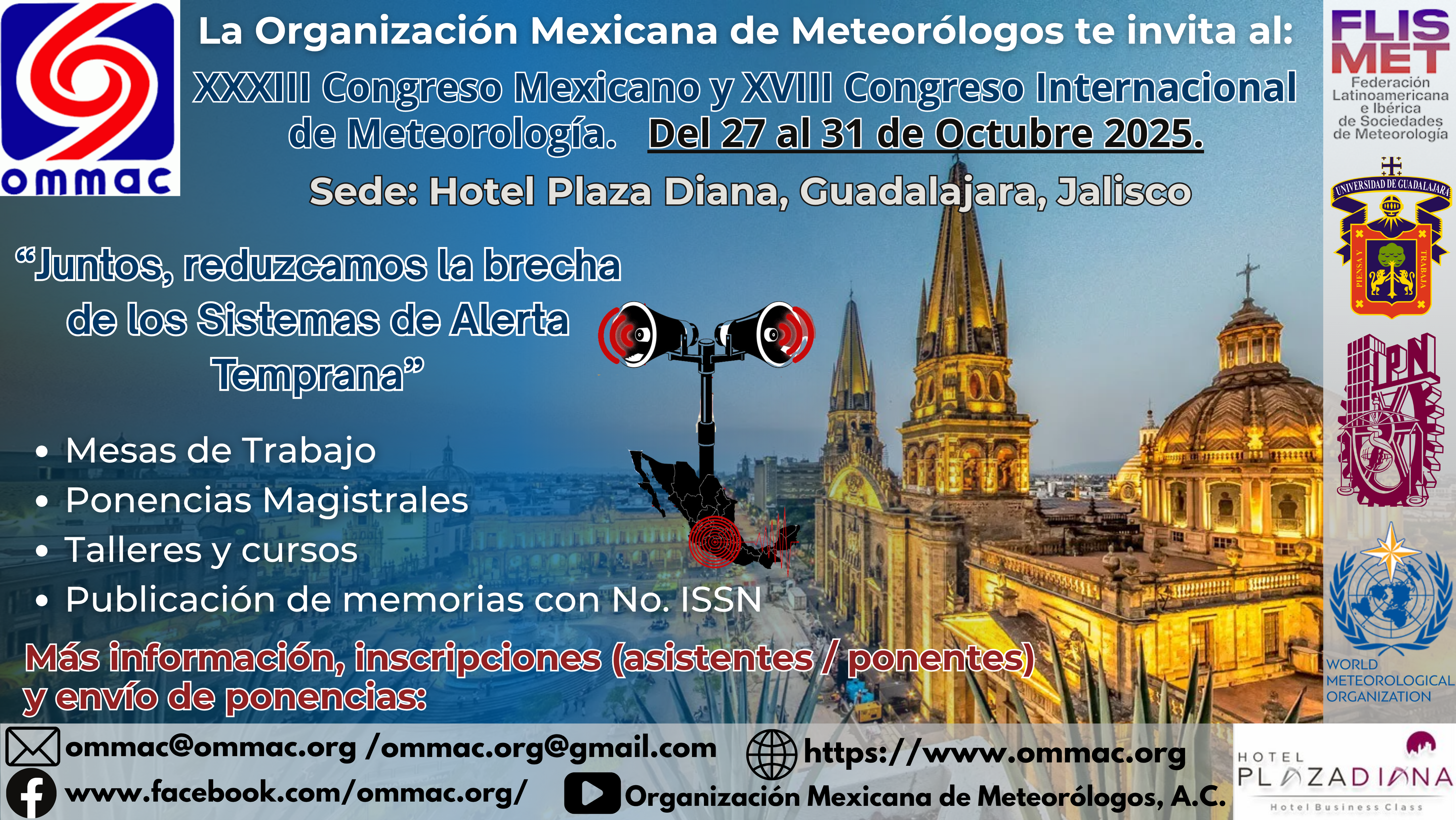 La OMMAC en colaboración con la Universidad de Guadalajara y en particular el Instituto de Astronomía y Meteorología, invitan al XXXIII Congreso Mexicano y XVIII Congreso Internacional de Meteorología,